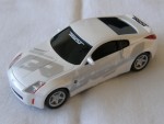schwarze, nicht durchsichtige Scheiben, kolorierte Lichter und silberne 5-Steg-Felgen mit Profil-Gummireifen. Aufdrucke "Trust GR" in silber, weiss und schwarz auf dem Auto verteilt. Batteriebetrieb für Motorensound in der Bodengruppe |
