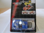 durchsichtige Scheiben, schwarzes Linkslenker-Interieur, Scheibenrahmen, B-Säule, angedeutete Kühlöffnungen auf der Motorhaube und Kühlergrill. 2-Farben-Karosserie. Schwarze, verschraubte und detaillierte Kunststoff-Bodenplatte. Zu öffnende Türen. Silberne Türgriffe und Domstrebe. Rückspiegel in Wagenfarbe an der A-Säule angebracht. Auf der Motorhaube und den Seiten ein blau-weisser Aufdruck "Nissan" und die weiss-schwarze Startnummer 23. Auf der Frontscheibe und der Heckstossstange den roten Aufdruck "Nissan". Einem Rennfahrzeug der Japanischen GT-Meisterschaft nachempfunden. Glasscheinwerfer und kolorierte Rücklichter. Schwarze 5-Steg-Felgen mit Profilgummi-Reifen und Pull-Back-Antrieb. Fahrzeug aus einem 4-er Set Die Cast Action Cars Racing