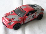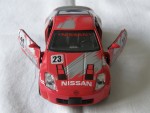 schwarz-silbernes Interieur, zu öffnende Türen, als linkslenker Auto. Nachempfunden nach einem Rennauto mit Aufdrucken "Nissan Nr. 23" auf den Seiten und der Motorhaube. Kolorierte Lichter und schwarze 5-Doppelsteg-Felgen mit Gummiprofil-Reifen