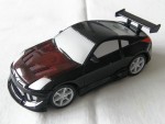 silberne, nicht durchsichtige Scheiben und Scheinwerfer, rötliche, durchsichtige Motorhaube mit Motorapplikationen darunter, als Funkfernsteuerauto in 27 MHz Konfiguration. Lenkbare Vorderräder mit silbernen 6-Steg-Felgen und profilierten Gummireifen. S-Tune Variante mit grossem Heck- und Frontspoilern |