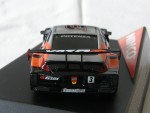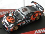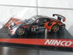 schwarzes Renninterieur mit Fahrerfigur auf der rechten Seite (Rechtslenker) in der Renn-Version der GT 500-er Langstrecken-Rennserie aus Japan. Diverse Werbeaufdrucke des G-Zox-Teams mit der Startnummer 3 der Fahrer Kaneishi + Comas. Goldene 6-Steg-Rennfelgen mit profillosen Gummireifen. Montiert auf Display-Box mit "Ninco" Werbetafeln |