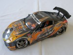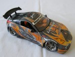 | Massstab | 1:18 |  orange-schwarzes Interieur, mit Schalensitzen und Hosenträgergurten, zu öffende Türen, Motorhaube mit detalilierten Motorandeutungen und Heckklappe mit Soundanlage. Karosserie nach einem GT-500 Rennauto nachgestylt mit grossen Spoilern und Werbeaufklebern und der Startnummer 22. Kolorierte Lichter und Chrom-5-Steg-Felgen mit Profilgummireifen