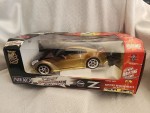 schwarze, nicht durchsichtige Scheiben, Kühlergrill, aufgesetzter Heckspoiler und Rückspiegel an der A-Säule angebracht. Frontspoiler, Schweller und Heckdiffusor in Wagenfarbe. Chromtürgriffe und Auspuffendrohre. Zu öffnende Motorhaube mit Motorapplikation. Auf den Seiten goldene Air-Brush Streifen. Detaillierte Embleme. Beleuchtete Glas-Scheinwerfer und kolorierte Rücklichter. Batteriebetriebenes Funkfernsteuer Auto in der Nismo Variante und in der 27 MHz Konfiguration mit lenkbaren Vorderrädern. Chrom-6-Steg-Felgen mit Profilgummi-Reifen. Fahrzeug aus der Fast & Furious Serie