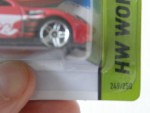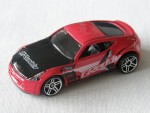 durchsichtige Scheiben, schwarzes Linkslenker-Interieur, Motorhaube mit weissem Aufdruck "GReddy" und Kühlergrill. Nismo Heckspoilerlippe in Wagenfarbe. Silbern eingefärbte Türgriffe. Graue, vernietete Kunststoffbodenplatte. Auf den Seiten schwarz-weisse Streifen und den weissen Aufdruck "GReddy" und das schwarze Hot Wheels Logo. Chrom-5-Doppel-Steg-Felgen mit Zierring und Hartplastikräder. Fahrzeug aus der Hot Wheels Workshop Serie, zweite Farbvariante