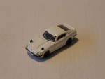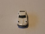 durchsichtige Scheiben, schwarzes Interieur und Seitenspiegel auf den Kotflügeln. Kolorierte Lichter, mit silbernen Elemtenten an der Heckstossstange und schwarze Magnesiumfelgen mit Hartplastikräder. Kunststoff-Bausatz aus der Choco Ü-Ei-Serie |