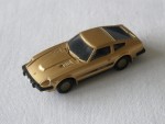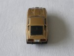 durchsichtige Scheiben, schwarzes Interieur und Stossstangen. Kolorierte Lichter. Ausführung mit Aufdruck "Turbo" im schwarzen Seitenaufprallschutz und mit Pull-Back-Antrieb. Kunststoffauto mit goldenen 8-Doppel-Steg-Felgen im Sterndesign und Gummi-Reifen |