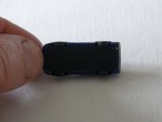 schwarze, nicht durchsichtige Scheiben, in silber eingefärbte Details wie Stossstangen und 8-Steg-Felgen bei feststehenden Rädern. Kolorierte Lichter, einfaches Plastikmodel aus einer Japanischen Manga-Serie |