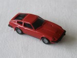 durchsichtige Scheiben, schwarzes Interieur und Stossstangen. Kolorierte Lichter. Ausführung ohne Aufdruck "Turbo" im schwarzen Seitenaufprallschutz und ohne Pull-Back-Antrieb. Kunststoffauto mit silbernen 8-Doppel-Steg-Felgen im Sterndesign und Gummi-Reifen