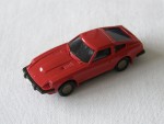durchsichtige Scheiben, schwarzes Interieur und Stossstangen. Kolorierte Lichter. Ausführung ohne Aufdruck "Turbo" im schwarzen Seitenaufprallschutz und ohne Pull-Back-Antrieb. Kunststoffauto mit goldenen 8-Doppel-Steg-Felgen im Sterndesign und Gummi-Reifen