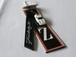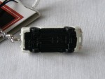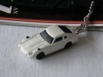 schwarze, nicht durchsichtige Scheiben. Aufgesetzte Rückspiegel auf den Kotflügeln montiert. Kolorierte Lichter. Schwarze 5-Steg-Felgen mit Hartplastikräder. Fahrzeug aus dem SEGA Fairlady Z-Set als Schlüsselanhänger oder Anhänger für ein Handy |