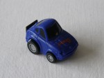 schwarze, nicht durchsichtige Scheiben, Boden- und Heckplatte. Auf der Motorhaube roter Aufdruck "Choro-Q". Silberne 12-Steg-Felgen mit Gummi-Reifen und Pull-Back-Antrieb