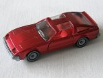 durchsichtige Scheiben, inklusive Targa-Dächer. Rotes Interieur, schwarzes Lenkrad und zu öffnende Türen. Vernietete, farblose Metallbodenplatte-Stossstangen-Einheit. Kolorierte Rücklichter. Silberne 16-Steg-Original-Siku-Felgen mit Zierring und Hartplastikräder. Nicht vernietet aber Original |