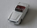 2-sitziges, offenes Convertible mit burgundyrotem Interieur. Mit einfarbiger Karosserie und silbernen Elementen beim Kühlergrill, den Stossstangen und den Scheinwerfern. Kolorierte Lichter. Stahlfelgen mit Chromraddeckel und Gummi-Reifen |
