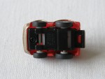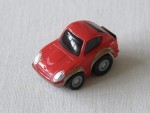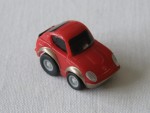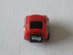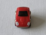 schwarze, nicht durchsichtige Scheiben. Auf der schwarzen Heckplatte den weissen, japanischen Aufdruck "Mini Choro-Q". Silberne Kotflügelverbreiterungen, Abdeckungen auf den Scheinwerfern und Stossstangen. Graue 5-Steg-Felgen mit Gummi-Reifen und Pull-Back-Antrieb. Fahrzeug aus der TOMY-Fairlady Serie |
