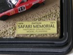 | Massstab | 1:87 |  Safari Memorial mit Datsun Bluebird als Diorama. Durchsichtige Scheiben, schwarzes Interieur, Motorhaube und Heckblende. Als Rallyfahrzeug von 1970, der East Affrican Rally mit der Startnummer 11 und vielen Details. Zusammen mit einem Datsun Bluebird mit der Startnummer 4, in einer Rennsituation. Als Safari Memorial-Set aus der "Historys Collection". Schwere Massive-Metallmodelle ohne bewegliche Teile