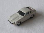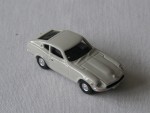durchsichtige Scheiben, schwarzes Interieur und Kühlergrill. In silber eingefärbte Details wie Stossstangen, Türgriffe und Embleme. Kolorierte Lichter. Feststehende, silberne Scheiben-Räder. Schweres, massives Metallmodel ohne bewegliche Teile