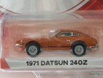 durchsichtige Scheiben, schwarzes Interieur, silberne Scheibenrahmen und Chromstossstangen. Linkslenker-Strassenfahrzeug von 1971 für den US-Markt, mit schwarzem Streifen auf den Seiten. Kolorierte Lichter. Silberne 4-Steg-Felgen mit Profilgummi-Reifen. Fahrzeug aus der Japan Torque-Serie 1 |