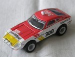 | Massstab | 1:64 |  durchsichtige Scheiben, schwarzes Interieur, silberne Scheibenrahmen, aber ohne Heckstossstange. Dem für die US-Baja-Rally eingesetzten Rennauto des BRE-Teams von John Morton, mit der Startnummer 300, nachempfunden, mit dem schwarzen Aufdruck "Simoniz" auf der Motorhaube und den Seiten. Zusatzscheinwerfer auf der Frontstossstange und dem Dach. Kolorierte Lichter. Silberne 4-Steg-Felgen mit Profilgummi-Reifen. Fahrzeug aus der Japan Torque-Serie 1