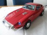 | Massstab | 1:10 |  bläuliche, durchsichtige Scheiben, farbiges Interieur mit weissem Steuerrad. Fahrzeug wird im Weissblech-Pressverfahren in mehreren Teilen geformt und mittels Lithographie bedruckt, ein Schwungrad-Antrieb verbaut und zusammengestellt. Chrom Stossstangen-Heckblenden-Einheit, Scheibenrahmen und Entlüftungsgitter auf der Motorhaube. Kolorierte Lichter. Exemplar neuerer Prägung mit blauen Scheinwerfern. Chrom-4-Steg-Felgen mit Hartplastikräder