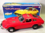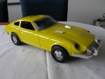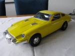 | Massstab | 1:10 |  bläuliche, durchsichtige Scheiben, farbiges Interieur mit weissem Steuerrad. Fahrzeug wird im Weissblech-Pressverfahren in mehreren Teilen geformt und mittels Lithographie bedruckt, ein Schwungrad-Antrieb verbaut und zusammengestellt. Chrom Stossstangen-Heckblenden-Einheit, Scheibenrahmen und Entlüftungsgitter auf der Motorhaube. Kolorierte Lichter. Exemplar neuerer Prägung mit blauen Scheinwerfern. Chrom-4-Steg-Felgen mit Hartplastikräder