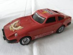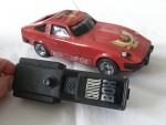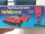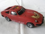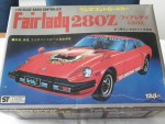 | Massstab | 1:20 |  schwarze, nicht durchsichtige Scheiben und Stossstangen. Chrom Scheinwerfer, Rücklichter und Funkantenne rechts in der Motorhaube. Auf der Motorhaube ein braun-grau-gelb-weisser Adler-Aufkleber. Auf der Frontscheibe ein Aufkleber mit dem Aufdruck "Fairlady 280 Z Rally". Auf den Seiten ein verwitterter, weisser Aufkleber mit dem Aufdruck "Nissan Racing Team". Auf dem Dach ein rot-gelb-silberner Aufkleber mit dem Aufdruck "Datsun". Batteriebetriebenes Funk-Fernsteuer-Auto. Chrom-8-Steg-Tiefbett-Felgen mit Profilgummi-Reifen mit Führungsrad in der Bodenplatte. Einfaches Kunststoffmodellauto