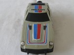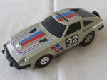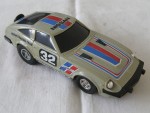 | Massstab | 1:30 |  schwarze, nicht durchsichtige Scheiben, Stossstangen und verschraubte Bodenplatte. Auf der Motorhaube und dem Dach blau-rote Streifen und den schwarzen Aufdruck "NISSAN". Auf den Seiten blau-rot-schwarze Streifen und den schwarz-weissen Aufdruck "Fairlady Z-T 2by2 Racing Team" und die schwarz-weisse Startnummer 32. Kolorierte Lichter. Im Heck ein Handgriff für den Aufzug-Antrieb. Silber-Chrom-5-Steg-Felgen mit Hartplastikräder