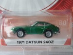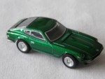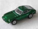 | Massstab | 1:64 |  durchsichtige Scheiben, schwarzes Interieur, silberne Scheibenrahmen und Chromstossstangen. Linkslenker-Strassenfahrzeug von 1971 für den US-Markt, mit schwarzem Streifen auf den Seiten. Kolorierte Lichter. Silberne 4-Steg-Felgen mit Profilgummi-Reifen. Fahrzeug aus der Japan Torque-Serie 1, als limitierte Green Machine Ausgabe