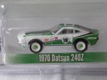 | Massstab | 1:64 |  durchsichtige Scheiben, schwarzes Interieur silberne Scheibenrahmen und Chromstossstange vorne ohne hintere Stossstange. Linkslenker-Strassenrennfahrzeug von 1970 mit grünem, aufgesetztem Heckspoiler. Auf dem ganzen Auto grün-schwarze Streifen sowie die schwarze Startnummer 18, mit diversen Werbeaufklebern und dem weissen Aufdruck "Greenlight" auf der Motorhaube. Kolorierte Lichter. Weiss-grüne 4-Steg-Felgen mit Profilgummi-Reifen. Fahrzeug aus der Trade-Show Exclusive Serie aus 2018 (Hong-Kong Toy Fair, Nürnberg Spielwarenmesse und New York Toy-Fair)