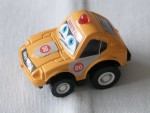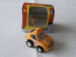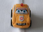 schwarze, nicht durchsichtige Scheiben mit grauen und schwarzem Aufklebern mit Aufdrucken "Safety Car Nr. 00" sowie blauen Augen auf der Frontscheibe. Rotes Drehlicht auf dem Dach. Weisse 6-Steg-Felgen mit Gummi-Reifen und Pull-Back- Antrieb |