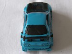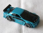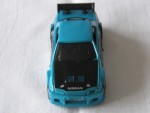 durchsichtige Scheiben, schwarzes Interieur mit Überrollkäfig Motorhaube und aufgesetztem Heckspoiler, als Driftfahrzeug mit Bodykit vom R 34. Auf den Seiten schwarze Streifen sowie den Aufdruck in Weiss "Nissan". Chrom-5-Steg-Felgen mit Hartplastik Reifen