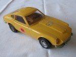 | Massstab | 1:20 |  durchsichtige Scheiben, braunes Interieur eines Kunststoff-Linkslenker-Autos. Chrom Stossstangen-Kühlergrill-Einheit, Scheinwerfer, Heckstossstange-Heckblenden-Einheit mit kolorierten Rücklichtern. Auf der Motorhaube ein schwarz-weisser Checkered-Flag-Aufkleber und auf den Seiten ein rot-schwarzer Aufkleber, mit der Startnummer 9. Chrom-4-Doppelsteg-Felgen mit Hartplastikräder und mit batteriebetriebenem Anstoss-Motor