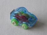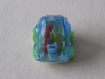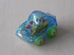 durchsichtige Plastik-Karosserie mit den Aufdrucken "Racing-Speed car Nr. 9", weissen Pfeilen auf der Motorhaube, "Super Power Nr. 9 auf dem Dach und farbige Heckplatte mit der Nr. 2018-6. Weisse 5-Steg-Felgen, grĂ¼ne Gummi-Reifen und Pull-Back-Antrieb