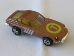 durchsichtige Scheiben, gelbes Interieur mit schwarzem Steuerrad. Chrom Stossstangen-, Kühlergitter- und Leuchten-Einheiten. Auf der Motorhaube ein gelber Aufdruck "7" in einem gelben Kreis. Auf den Seiten weisse Diagonal-Längs-Streifen. Chrom-5-Steg-Felgen mit Hartplastikräder |