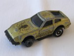 | Massstab | 1:60 |  schwarze nicht durchsichtige Scheiben. Angedeutete Targa-Dächer. Verschraubte Kunststoffbodenplatte-Stossstangen-Seitenauspuff-Einheit. Die-Cast Karosserie. Auf der Motorhaube ein schwarzer Spinnenaufdruck. Auf den Seiten den schwarzen Aufdruck "Amazing Spiderman". Am Heck die Öffnung für die Abschussvorrichtung (fehlt). Schwarze Scheiben-Felgen mit Hartplastikräder. Einfaches, sehr bespieltes Billigmodellauto, aber komplett