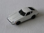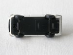 schwarze, nicht durchsichtige Scheiben, Heckblende und Kühlergrill. Silberne Scheibenrahmen und Stossstangen. Kolorierte Lichter. Schwarze Stahlfelgen mit Gummi-Reifen. Karosserie aus Metall, aus der UCC-Kaffee-Serie |