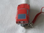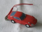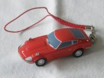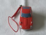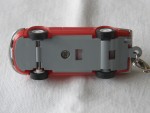 blaue, nicht durchsichtige Scheiben, silberne Scheibenrahmen, Scheibenwischer, Rückspiegel auf den Kotflügeln, Stossstangen und Scheinwerferabedeckungen. Kolorierte Rücklichter. Weisse 4-Steg-Felgen mit Gummi-Reifen und Pull-Back-Antrieb als Schlüssel-Anhänger |