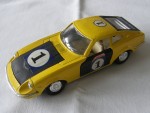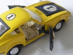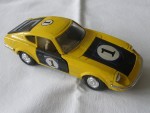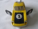 | Massstab | 1:31 |  durchsichtige Scheiben, cremefarbenes Interieur mit Liegesitzen. Zu öffnende, schwarze Türen, schwarze Motorhaube mit Motorapplikation und schwarzer Heckklappe, mit blau-weissem Aufdruck "Fairlady 240 Z". Auf der Motorhaube, dem Dach und den Seiten die schwarz-weiss-blaue Startnummer 1. Hinten links eine schwarze Radioantenne (fehlt). Chromstossstangen- heckblende und Scheinwerfer. Kolorierte Rücklichter. Chrom-6-Steg-Felgen mit Hartplastikreifen. Gebrauchsspuren aber komplett