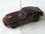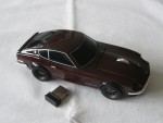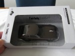 schwarze, nicht durchsichtige Scheiben, Heckspoiler und Kotflügelverbreiterungen. Chrom Scheibenrahmen, Stossstangen und Embleme. Kolorierte Lichter. Schwarze 8-Steg-Felgen mit feststehenden Hartplastikräder. Das Model ist eine Computer-Maus. Nissan-Werbeartikel aus Japan