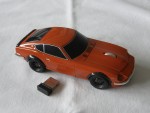 schwarze, nicht durchsichtige Scheiben, Heckspoiler und Kotflügelverbreiterungen. Chrom Scheibenrahmen, Stossstangen und Embleme. Kolorierte Lichter. Schwarze 8-Steg-Felgen mit feststehenden Hartplastikräder. Das Model ist eine Computer-Maus. Nissan-Werbeartikel aus Japan