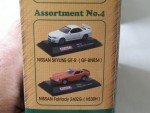 durchsichtige Scheiben, schwarzes Interieur, Kotflügelverbreiterungen und Heckspoiler. Silberne Scheibenrahmen, Stossstangen und Türgriffe. Kolorierte Lichter mit Glasabdeckungen auf den Scheinwerfern. Silberne 4-Doppelsteg-LM-Felgen mit Gummi-Reifen