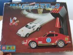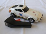 | Massstab | 1:20 |  schwarze, nicht durchsichtige Scheiben, Heckblende, Kühlergrill, Heckjalousie und Mikrofon-Rondelle auf dem Dach. Aufgesetzter Heckspoiler und Kotflügelverbreiterungen in Wagenfarbe. Chrom Stossstangen und Scheinwerfer. Diverse farbige Kleber auf dem Auto und den Seiten, mit der blauen Startnummer 8. Aktion während dem batteriebetriebenem Modus mittels beiliegendem Klapper-Handstück. Kolorierte Rücklichter. Chrom-5-Steg-Tiefbett-Felgen mit Profilgummi-Reifen und lenkbaren Vorderräder. Fahrzeug mit gleicher Bauart wurde auch von der Firma ATMA Brazil in Lizenz herausgegeben