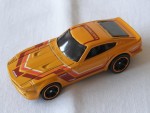 | Massstab | 1:60 |  durchsichtige Scheiben, schwarzes Interieur. Auf der Motorhaube, dem Dach und den Seiten rot-orange-weisse Streifen mit dem rot-dunkelgelben Aufdruck "Datsun" auf dem Dach. Auf der Motorhaube in weiss den Aufdruck "240Z". Schwarze 5-Steg-Felgen mit dunkelgelben Zierring und Hartplastikräder. Auto lose aus einem 5-er Set aus den USA