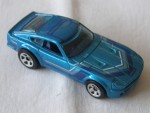 | Massstab | 1:60 |  durchsichtige Scheiben, blaues Interieur. Auf der Motorhaube, dem Dach und den Seiten dunkelblau-silber-weisse Streifen mit dem blau-dunkelblauen Aufdruck "Datsun" auf dem Dach. Auf der Motorhaube in silber den Aufdruck "240Z". Chrom-5-Steg-Felgen mit Hartplastikräder. Auto lose aus einem 5-er Set aus den USA