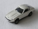 durchsichtige Scheiben, schwarzes Interieur und Kühlergrill. Silberne Stossstangen und Heckblende. Kolorierte Lichter mit Glasabdeckungen auf den Scheinwerfern. Gebauter Metall-Bausatz mit grauen Originalraddeckeln und Profilgumm-Reifen |