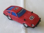 | Massstab | 1:43 |  blaue, nicht duchrsichtige Scheiben. Schwarze Stossstangen und Rückspiegel auf dem Kotflügeln montiert. Auf der Motorhaube und dem Dach ein weiss-schwarzer Aufkleber mit der Startnummer 83. Auf der Frontscheibe den Aufkleber mit dem Aufdruck "Elektromotive". Mit dem vorhandenen Decal-Set kann das Auto dem SCCA-Rennfahrzeug des Elektramotive Teams des Fahrers Don Devendorf nachempfunden werden. Kolorierte Lichter mit Glasabdeckungen auf den Scheinwerfern. Rennfahrzeug inklusive Motor für die Slot-Rennbahn. Chrom-5-Steg-Felgen mit Gummi-Reifen. Fahrzeug ist baugleich wie dasjenige der ARII-Slotrennbahn, hier aber allein