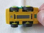 | Massstab | 1:87 |  schwarze, nicht durchsichtige Scheiben und gelbe Bodengruppe ohne Heckplatte. Rückspiegel in Wagenfarbe an der A-Säule angebracht. Auf der Frontscheibe ein chrom-rot-schwarzer Aufkleber mit dem Aufdruck "V 6 Turbo". Auf den Seiten ein chrom-rot-blau-schwarzer Aufkleber mit der Aufschrift "Z". Im Heck ein rot-weiss-schwarzer Aufkleber mit dem Aufdruck "90 Grad Bank". Gelbe Scheiben-Felgen mit Gummi-Reifen und Pull-Back-Antrieb. Fahrzeug mit normaler Choro-Q Karosserie aber unterschiedlichem Chassis und Sockel aus nicht bekannter Serie und Funktion
