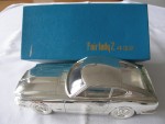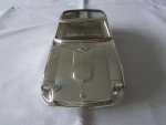 schweres Display-Model verchromt mit abnehmbarem Dach. Darunter sind Mulden für Streichhölzer und Zigaretten. Früheres Präsent für verdiente Datsun/Nissan-Händler |