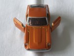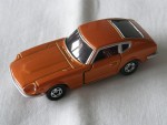 durchsichtige Scheiben, burgundy-rotes Interieur und zu öffnende Türen. Silbern eingefärbte Scheibenrahmen. Kolorierte Lichter. Bodenplatte ist auch gleichzeitig die Stossstangen- Kühlergrill- Rückleuchteneinheit. Chrom-5-Steg-Felgen mit Hartplastikräder. Fahrzeug zum 50-Jahr-Tomica-Jubiläum |