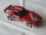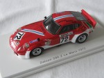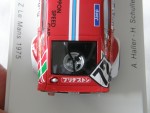 | Massstab | 1:43 |  durchsichtige Scheiben, schwarzes Renninterieur, Heckblende, Scheibenrahmen, Scheibenwischern mit Seitenspiegel links auf dem Kotflügel und rechts an der A-Säule montiert, Überrollbügel und Reserverad im Kofferraum. Aufgesetzter Heckspoiler, Frontspoiler, Stossstange vorne (hinen nicht montiert), Kotflügelverbreiterungen in Wagenfarbe. Dem 1975-er Le Mans Rennfahrzeug nachempfunden, mit der Startnummer 72 und diversen Werbeaufkleber, des Fahrerteams "Haller, Schuller Mächler". Kolorierte Lichter mit Glasabdeckungen auf den Scheinwerfern, inklusive Zusatzscheinwerfer unter der Stossstange und Heck-Nebelleuchte. Auspuffrohre links bei der Beifahrertüre. Silbegraue 4-Steg-Felgen mit Gummi-Reifen. Fahrzeug aus der Resine-Racing-Car Serie dieses Kleinserienherstellers mit Liebe zum Detail