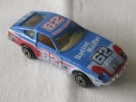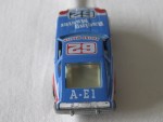 | Massstab | 1:60 |  bläuliche, durchsichtige Scheiben, cremefarbenes Interieur. Zu öffnende Türen. Chrom-Frontstossstange und Heckblende. Vernietete Metallbodenplatte-Stossstangen-Einheit. Entlüftungsgitter auf der Motorhaube und Stossschutzleisten auf den Seiten in Wagenfarbe. Auf der blau-rot-weissen Motorhaube den weissen Aufdruck "Racing Master", die weiss-schwarze Startnummer 62 und schwarzen Werbeaufdruck "A-E1. Auf den rot-weissen Seiten die rot-weisse Startnummer 62 und Werbeaufdrucke. Auf dem Dach den roten Aufdruck "Racing-Master" sowie die rot-weisse Startnummer 62. Auf der Heckklappe den weissen Aufdruck "A-E1". Chrom-6-Steg-Felgen mit Chromzierring und Hartplastikräder
